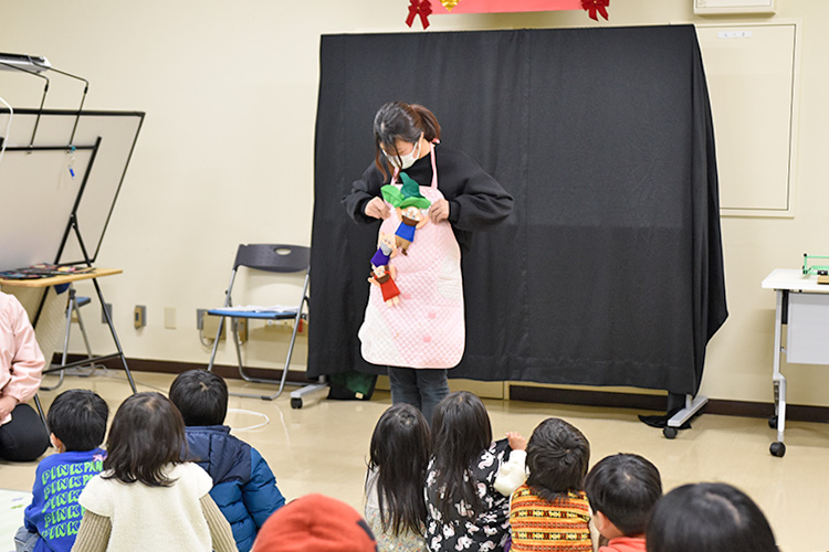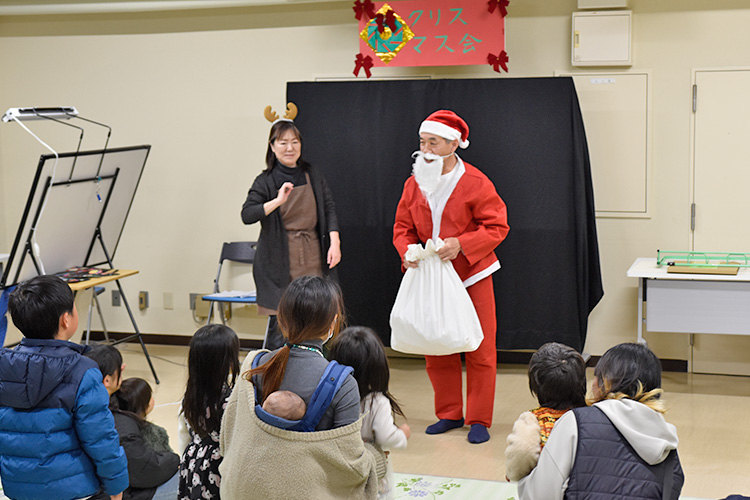 令和7年度「図書館クリスマス会」が開催されました! 2025年12月13日 お知らせ, イベント情報 12月13日(土)阿南町立図書館にて「図書館クリスマス会」が開催されました。約30人の親子のみなさんにご参加いただき、クリスマスをテーマにしたボランティアさんによる、語りや絵本の読み聞かせ、紙芝居、手遊び、パネルシアターのほか、保育士さんによるエプロンシアターやリズムダンスで楽しい時間を過ごすことができました。最後にはサンタクロースが登場し、子どもたちにプレゼントが配られ、とても楽しいクリスマス会となりました。ご参加いただき、ありがとうございました!